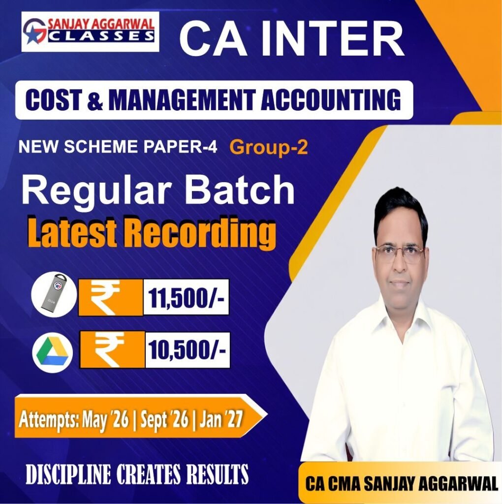 All Courses by CA CMA Sanjay Aggarwal Sir CA Intermediate Cost & Management Accounting Regular Paper -4 ( New Scheme ) Buy Now CA FINAL SPOM (SCPM) SET-B By CA CMA Sanjay Aggarwal sir Buy Now CMA Inter Paper 8 – Cost Accounting by CA CMA Sanjay Aggarwal Buy Now CMA Intermediate Paper 12 Management Accounting by CA CMA Sanjay Aggarwal Buy Now CMA Final Paper 16 Strategic Cost Management BY CA CMA Sanjay Aggarwal Sir Buy Now CMA FINAL SCM FASTRACK BY CA CMA SANJAY AGGARWAL Buy Now CA FINAL AMA OLD COURSE By CA Sanjay Aggarwal Buy Now CMA Inter Paper 6 Financial Accounting (AF) by CA CMA Sanjay Aggarwal Buy Now CMA Inter Group 1 COMBO Buy Now